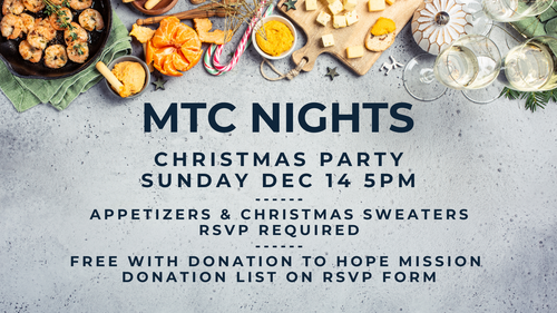 MTC Nights is an evening campus that meets on Sundays at 6pm. MTC Nights is a casual & relaxed gathering. We worship together, hear the same message from the Sunday AM Service, and make space to build relationships. Gather with us to grow closer to Jesus and build deeper community. Any age or background are welcome to join!